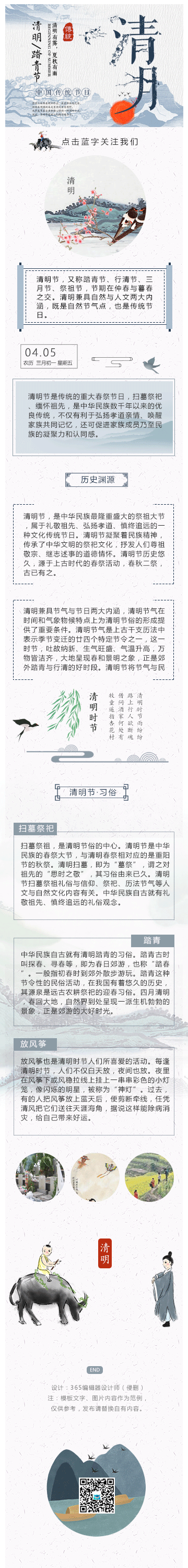 推荐理由:封面中国风、水墨画质感的背景图吸引眼球、模板全文墨蓝色基调,古风元素装饰,十分富有中国传统节日气质。清明节是法定节假日,任何行业都可以根据自己的特点追蹭热点。